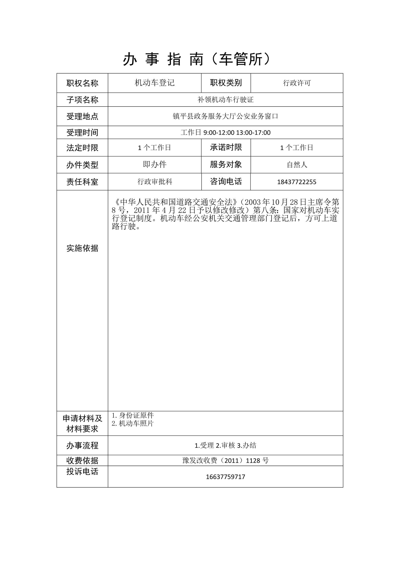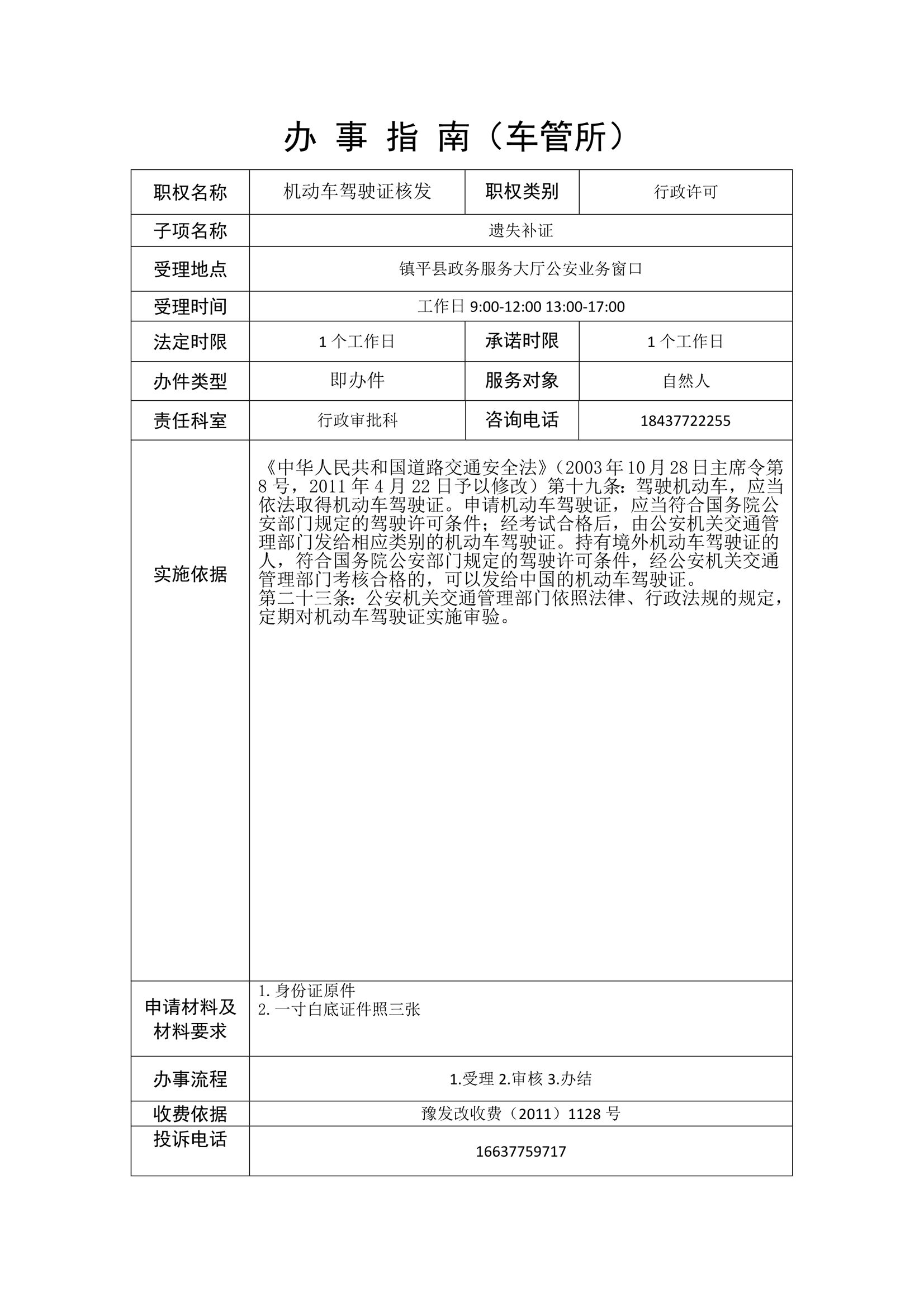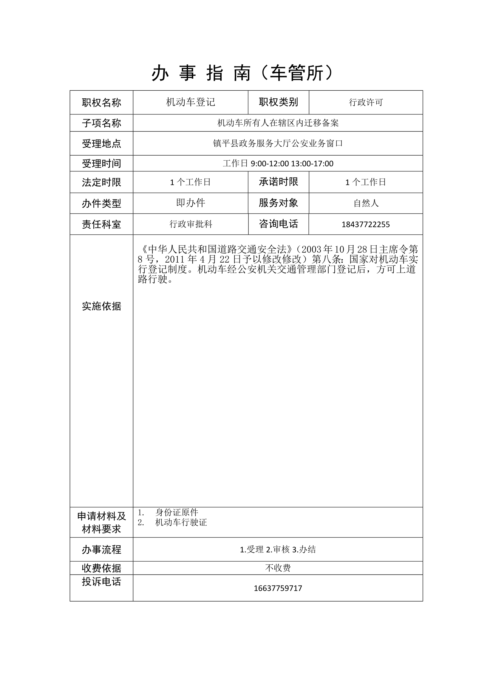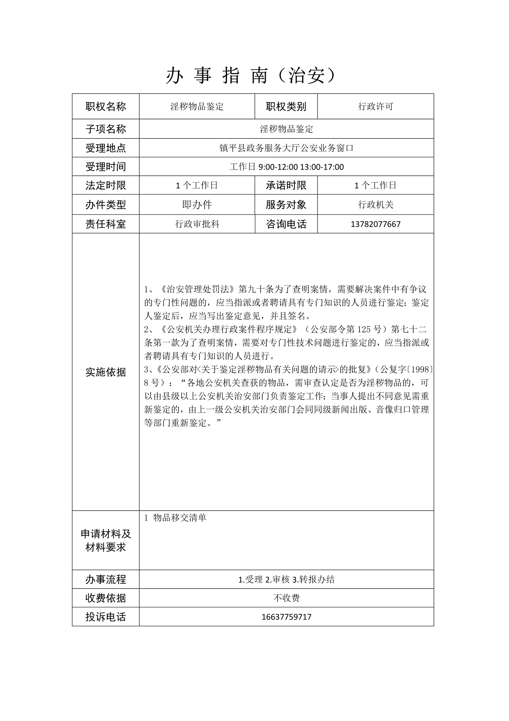 镇平县公安局政务服务事项办事指南