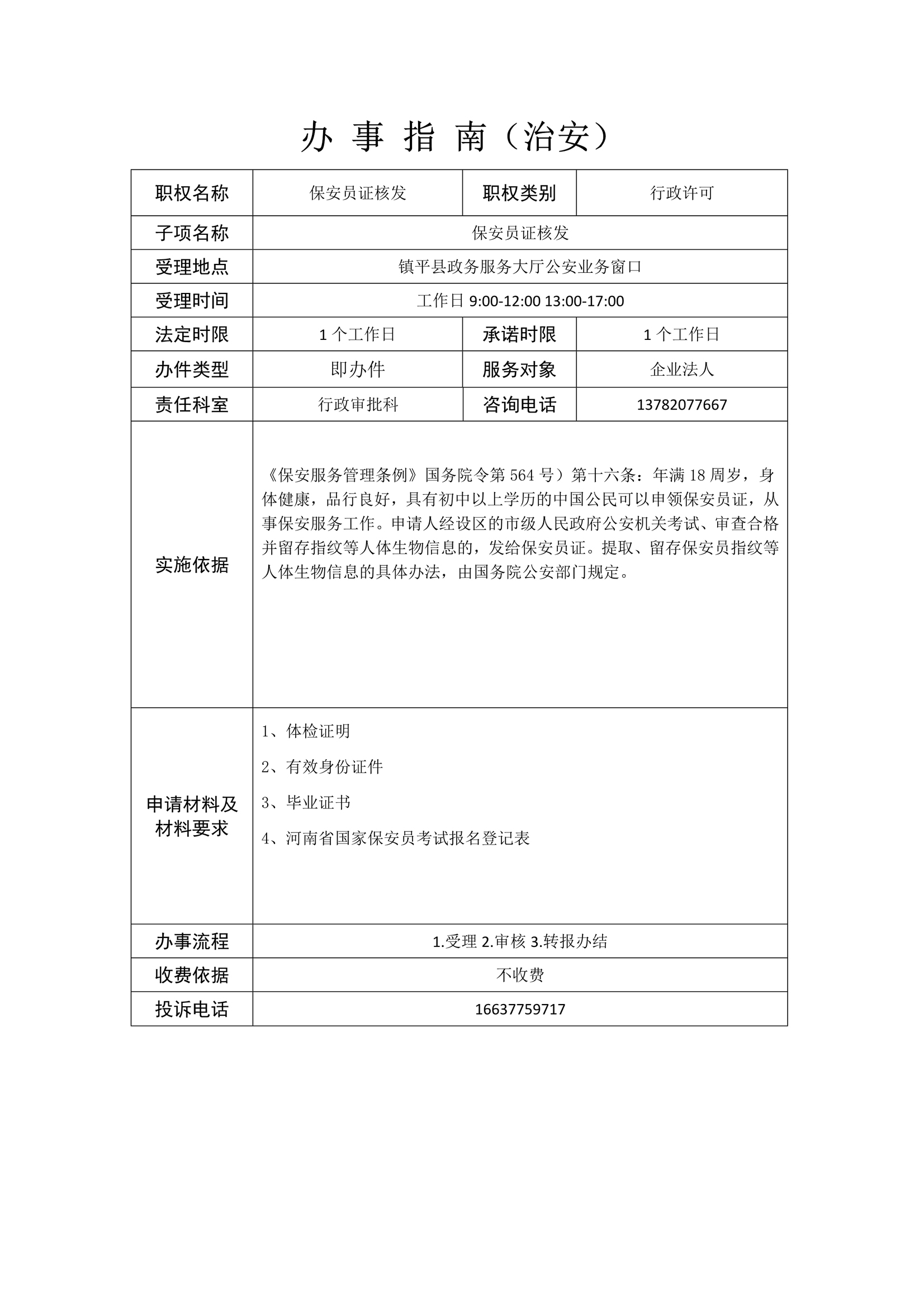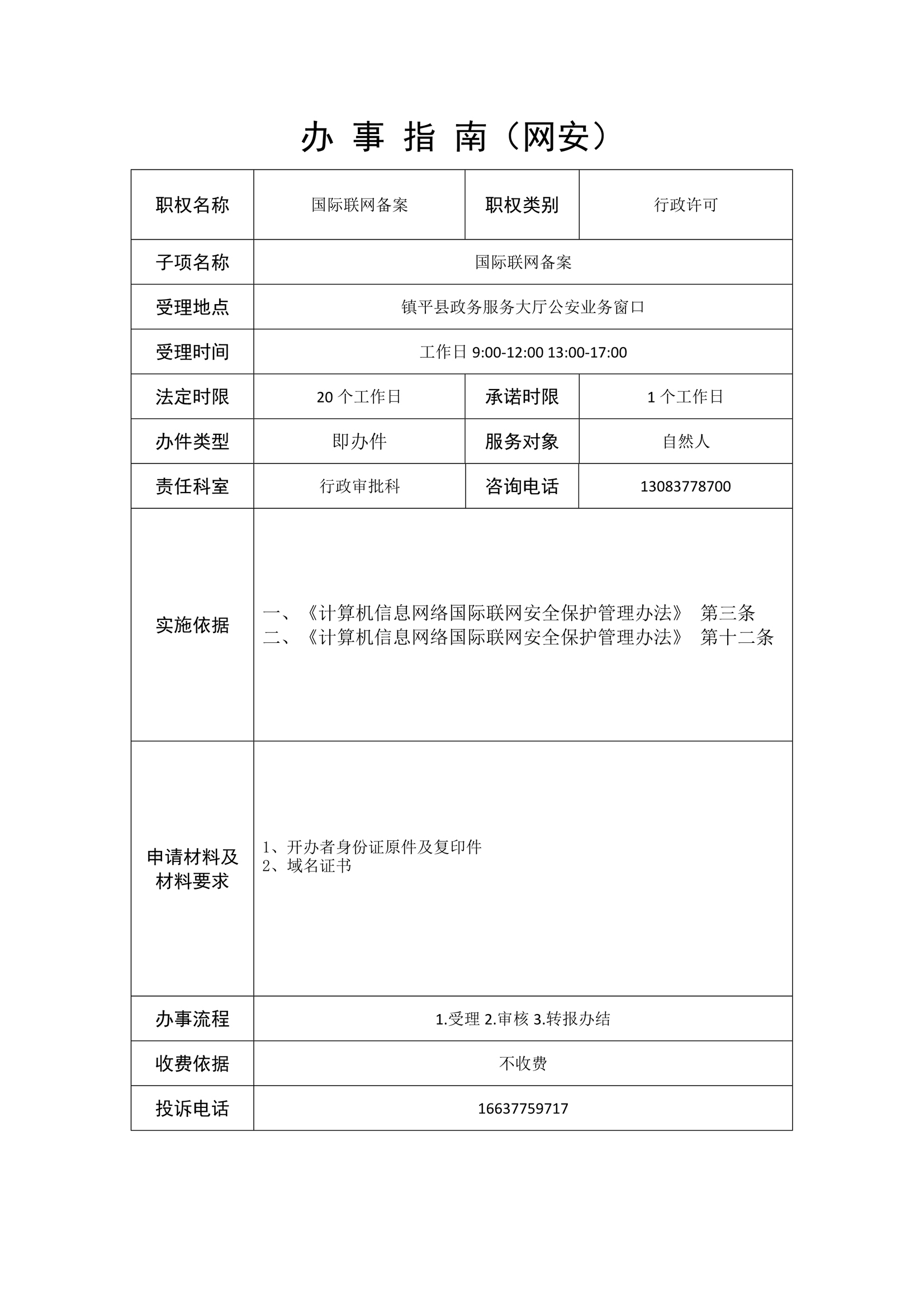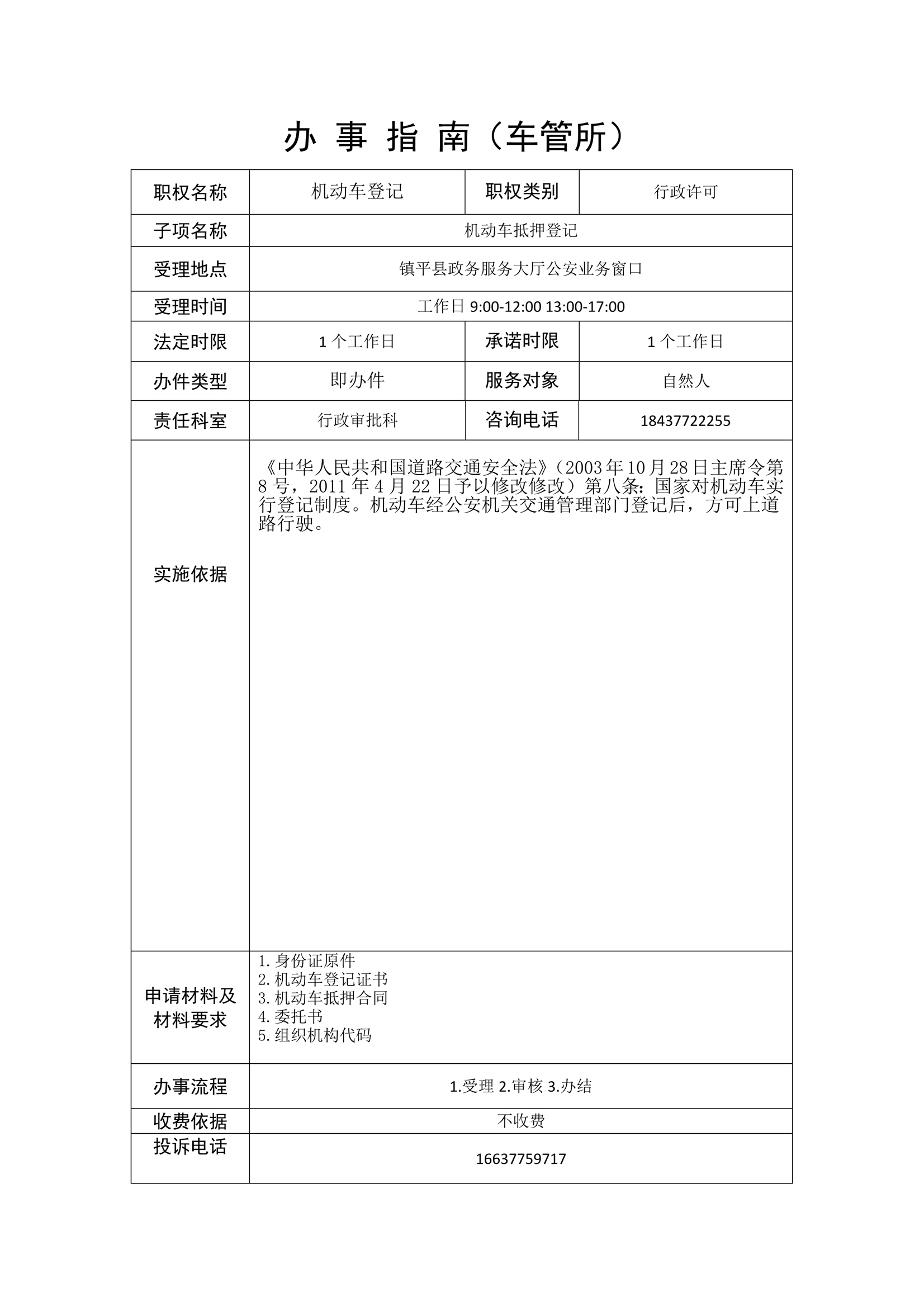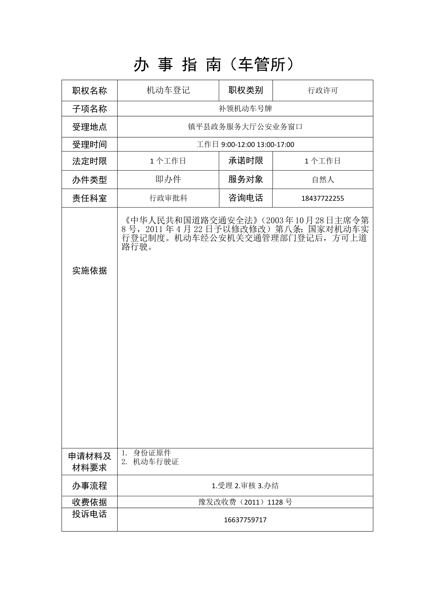 镇平县公安局政务服务事项办事指南