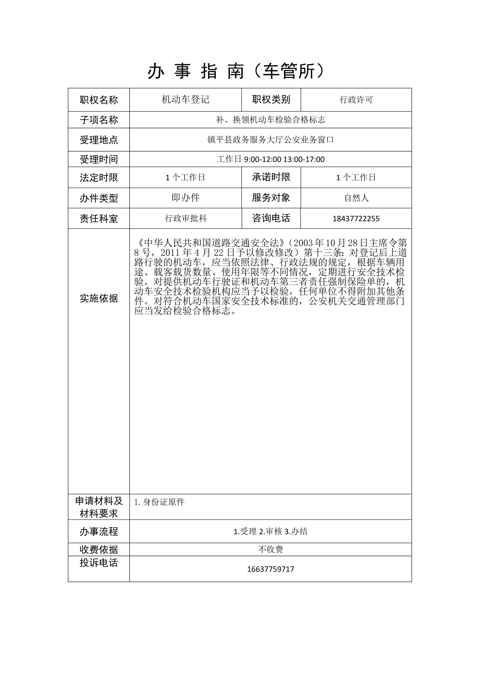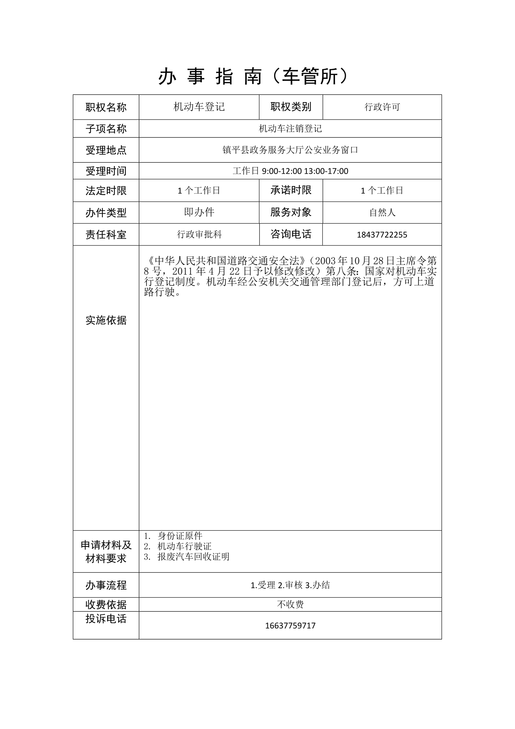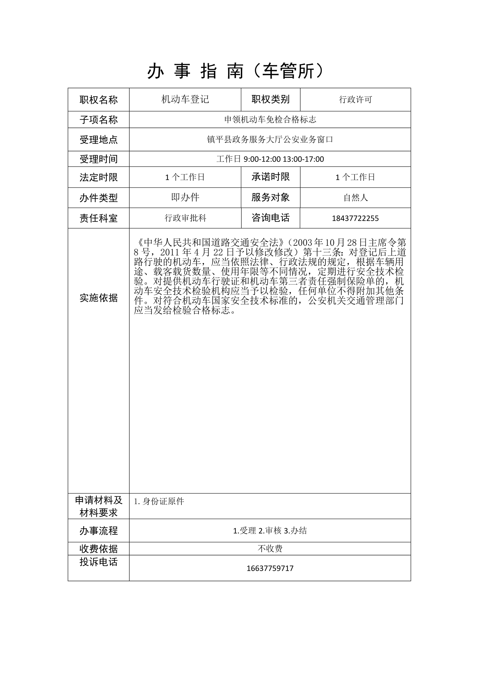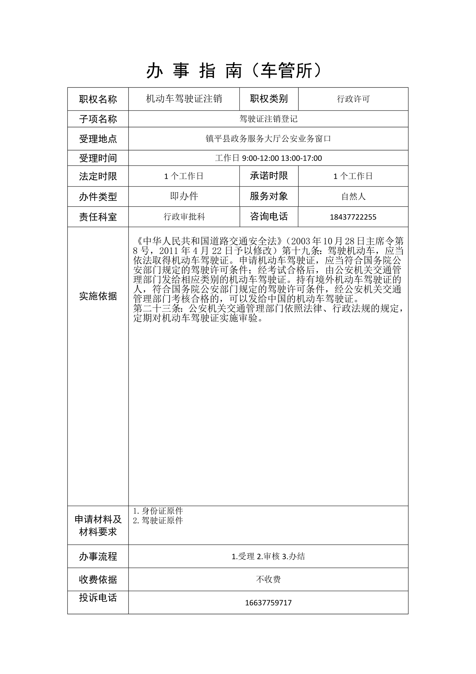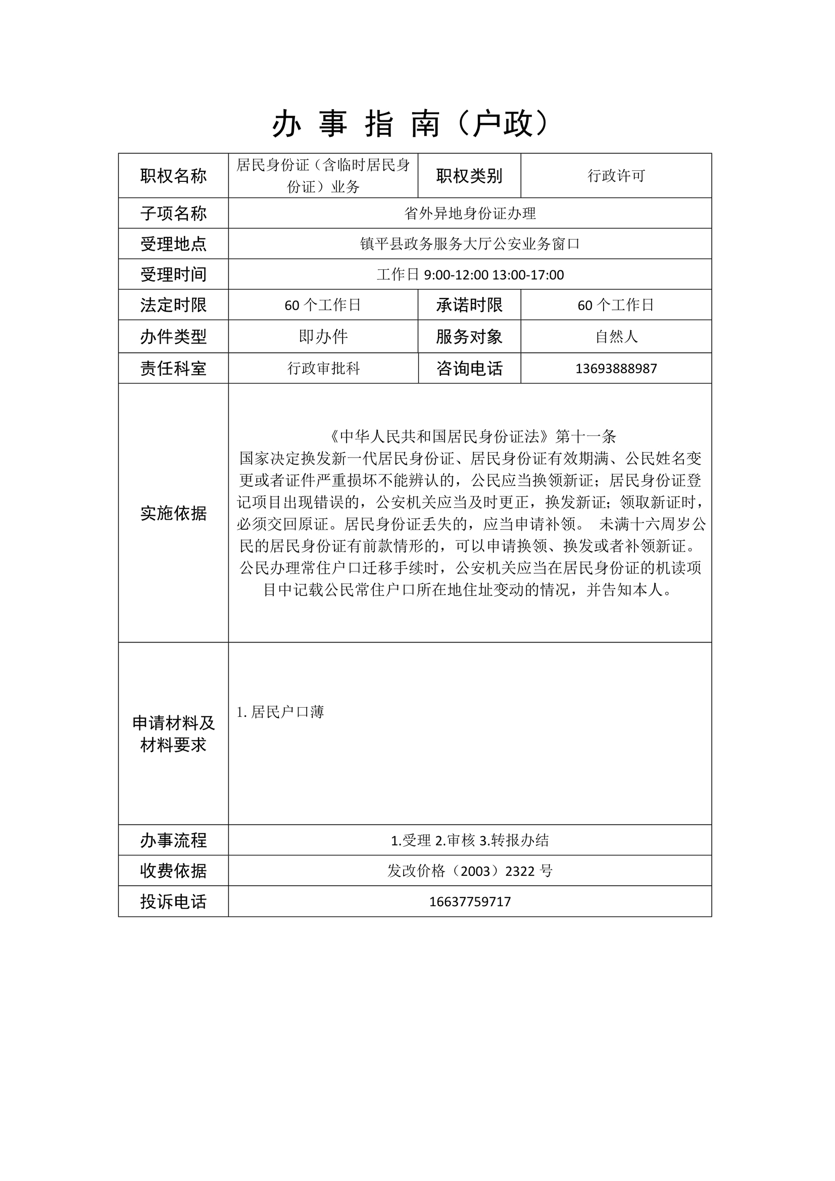 镇平县公安局政务服务事项办事指南