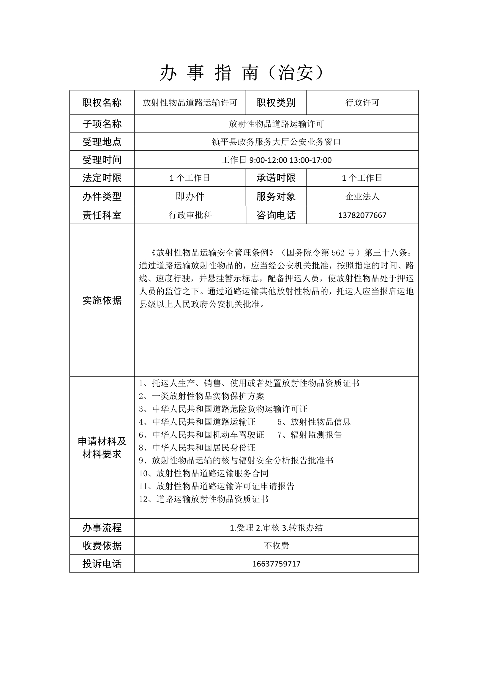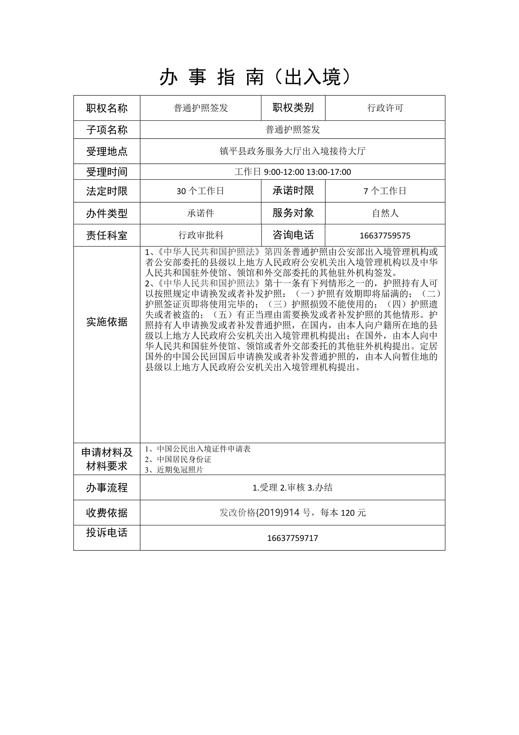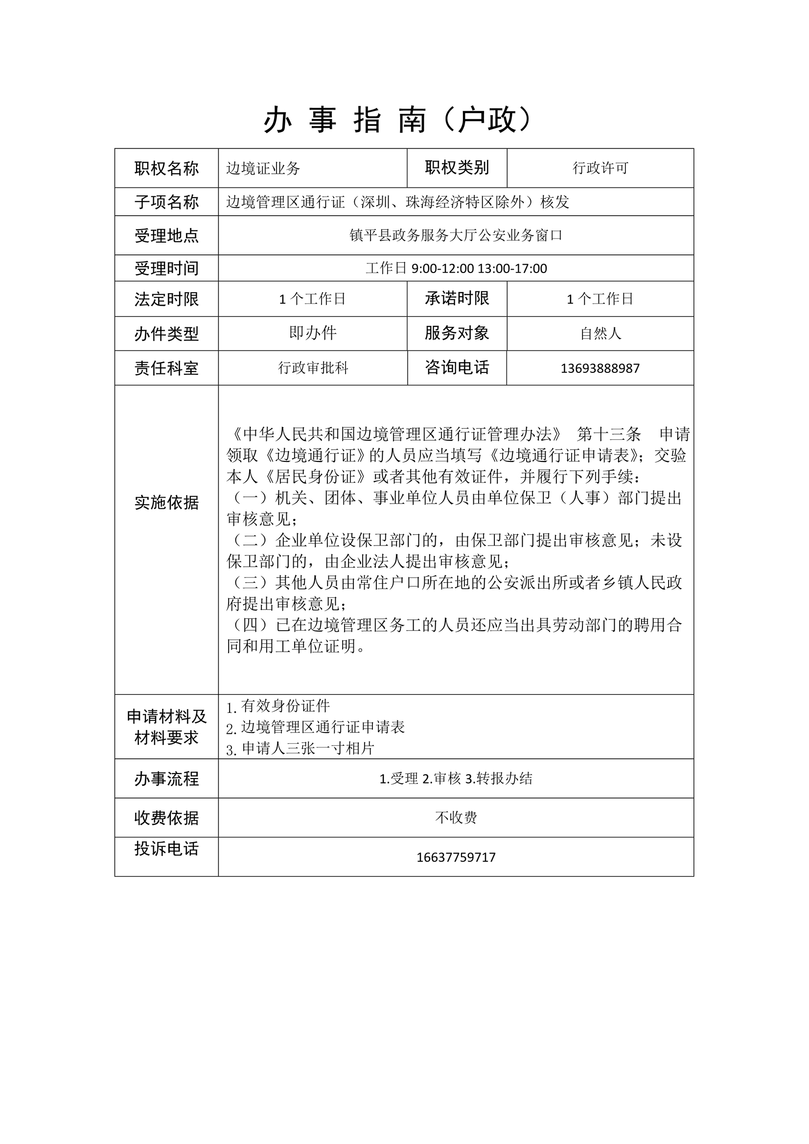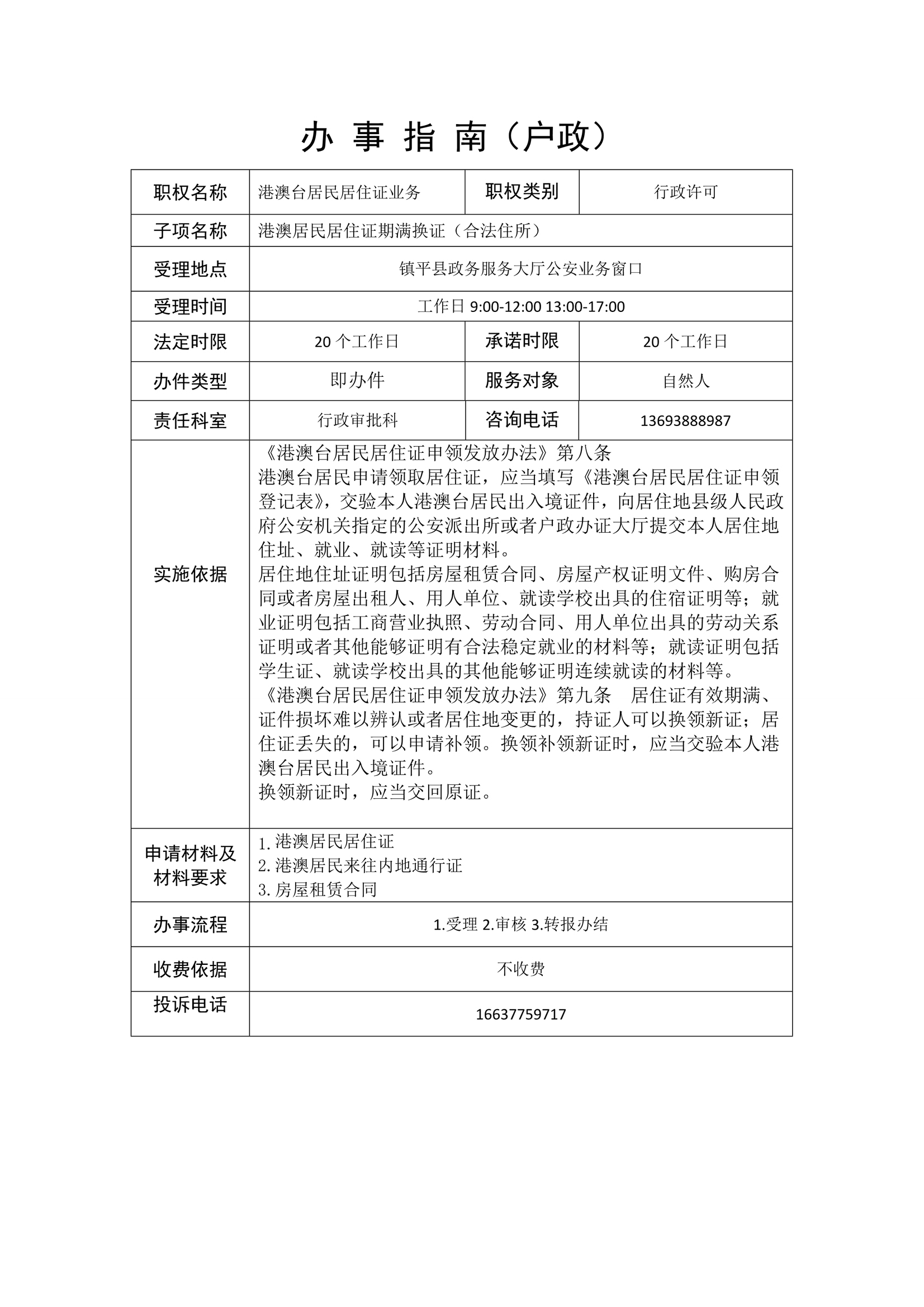 镇平县公安局政务服务事项办事指南