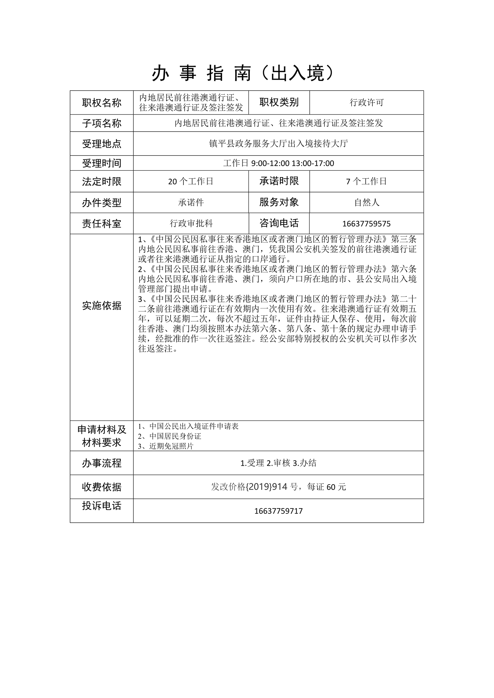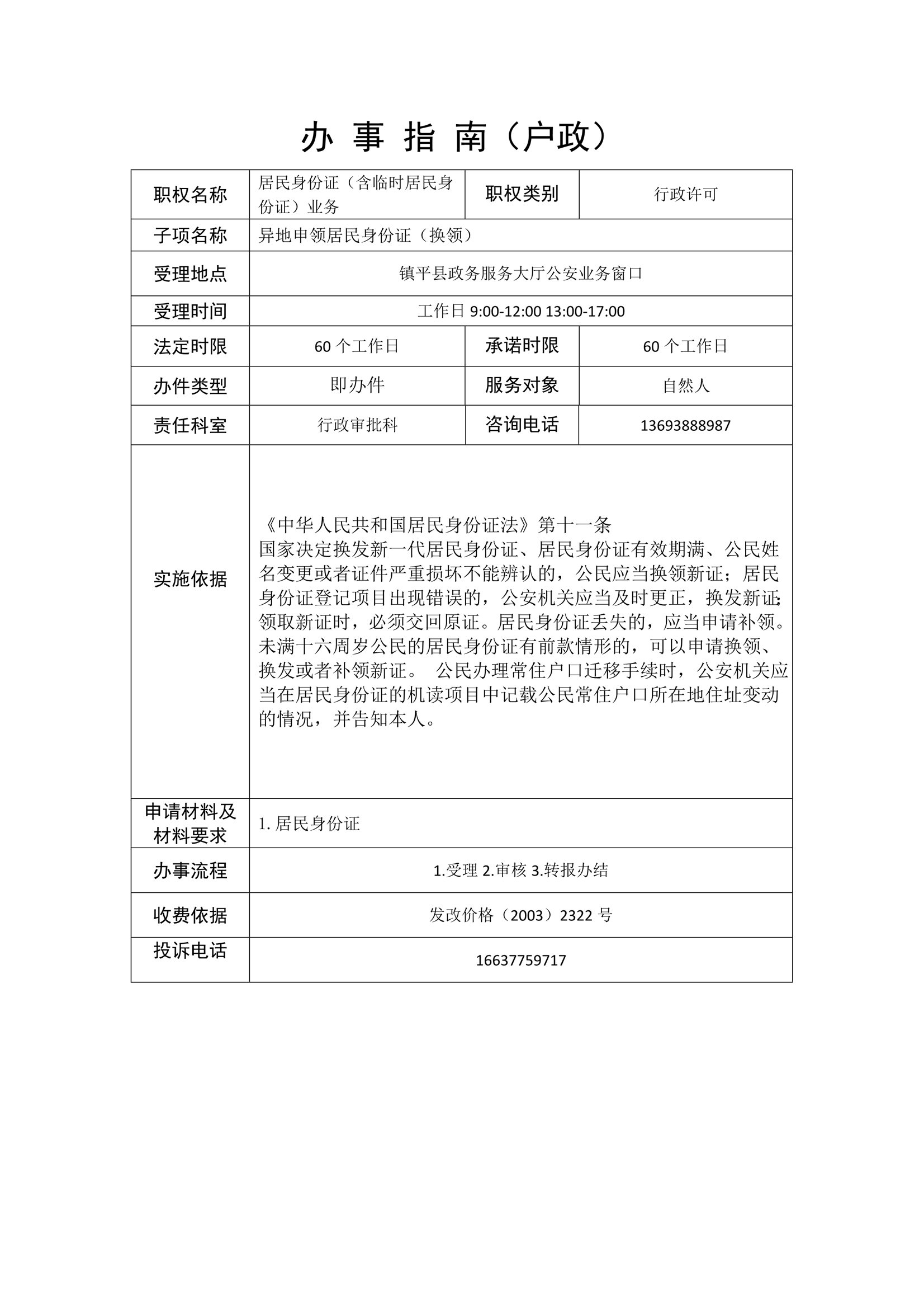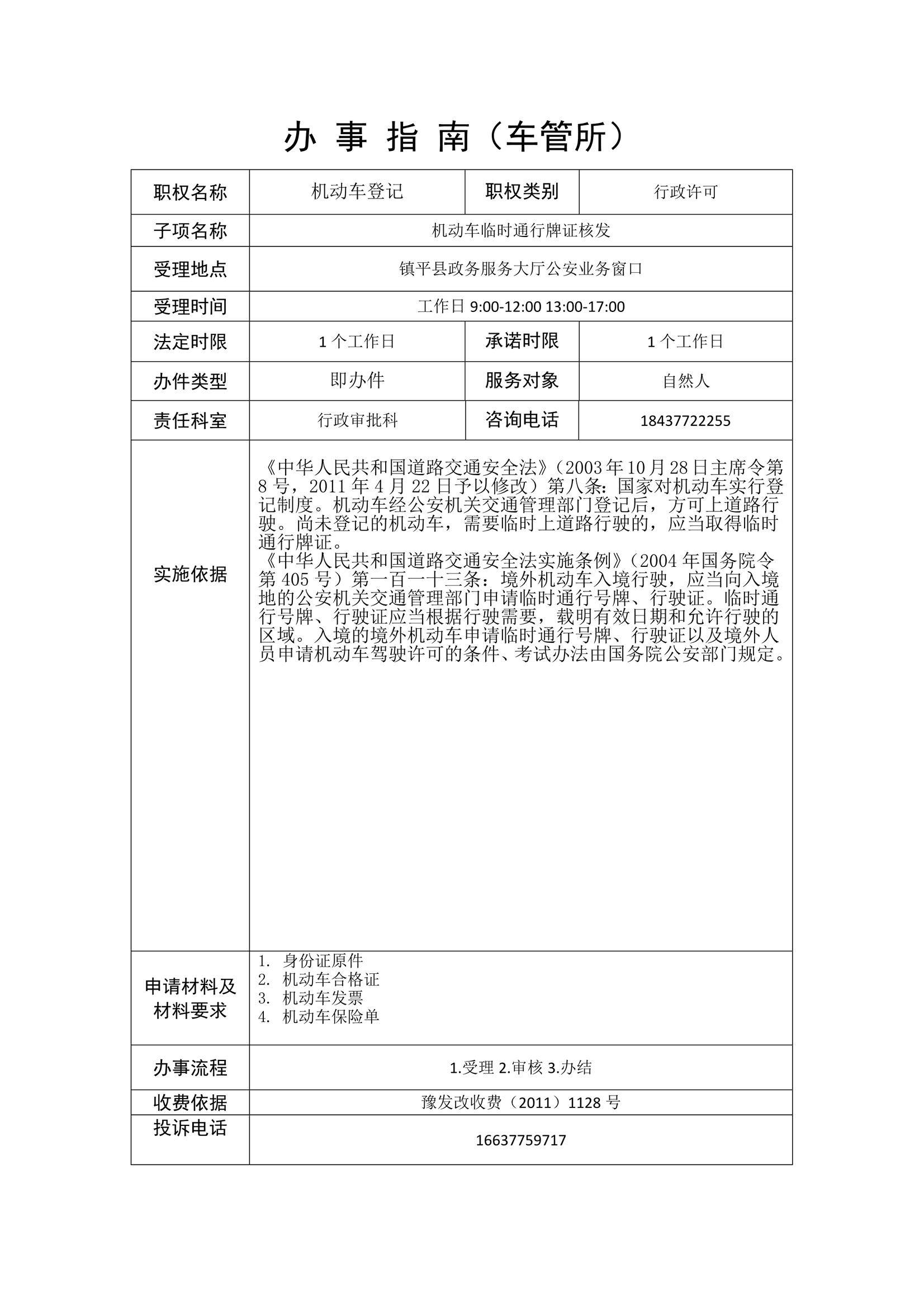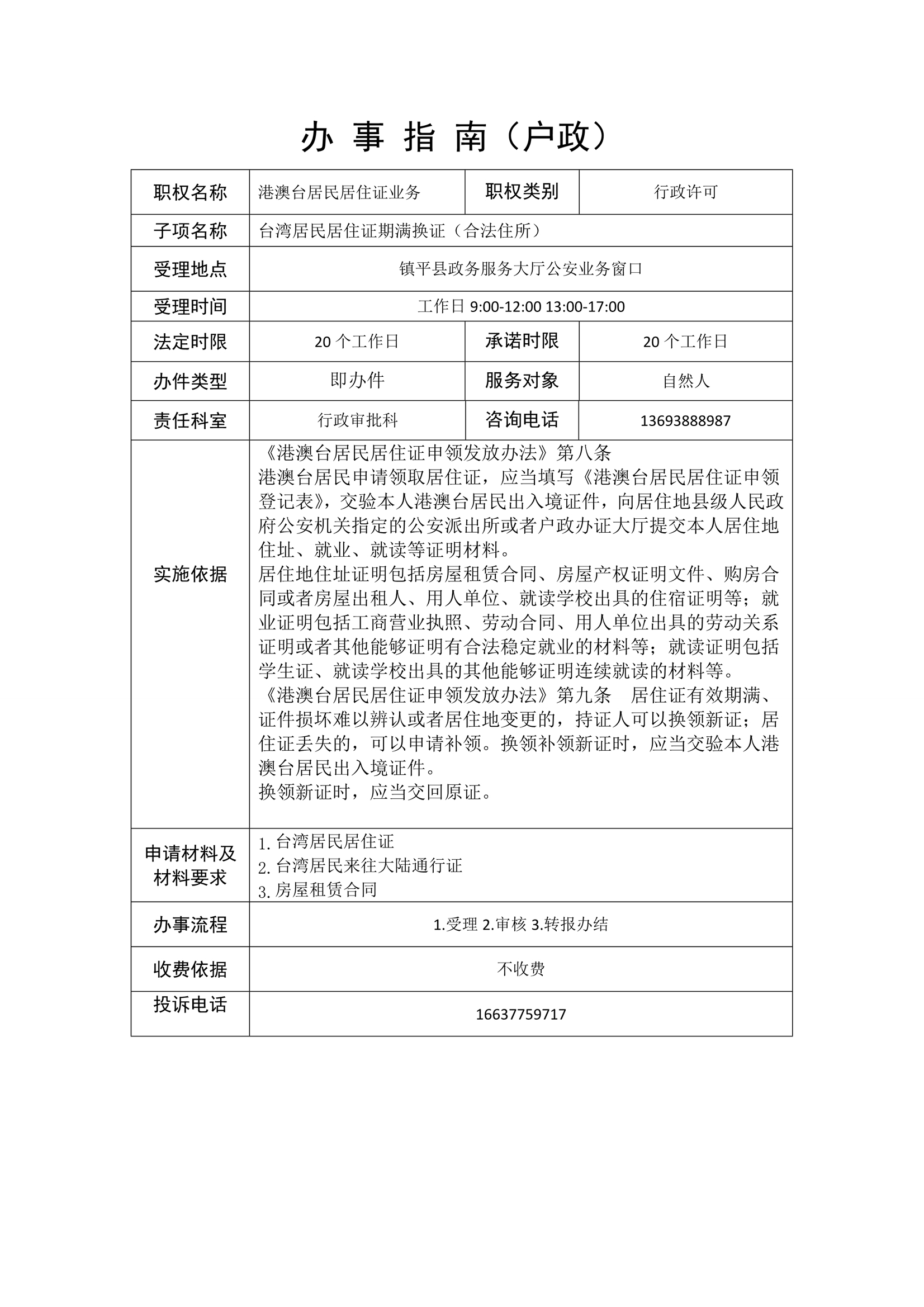镇平县公安局政务服务事项办事指南