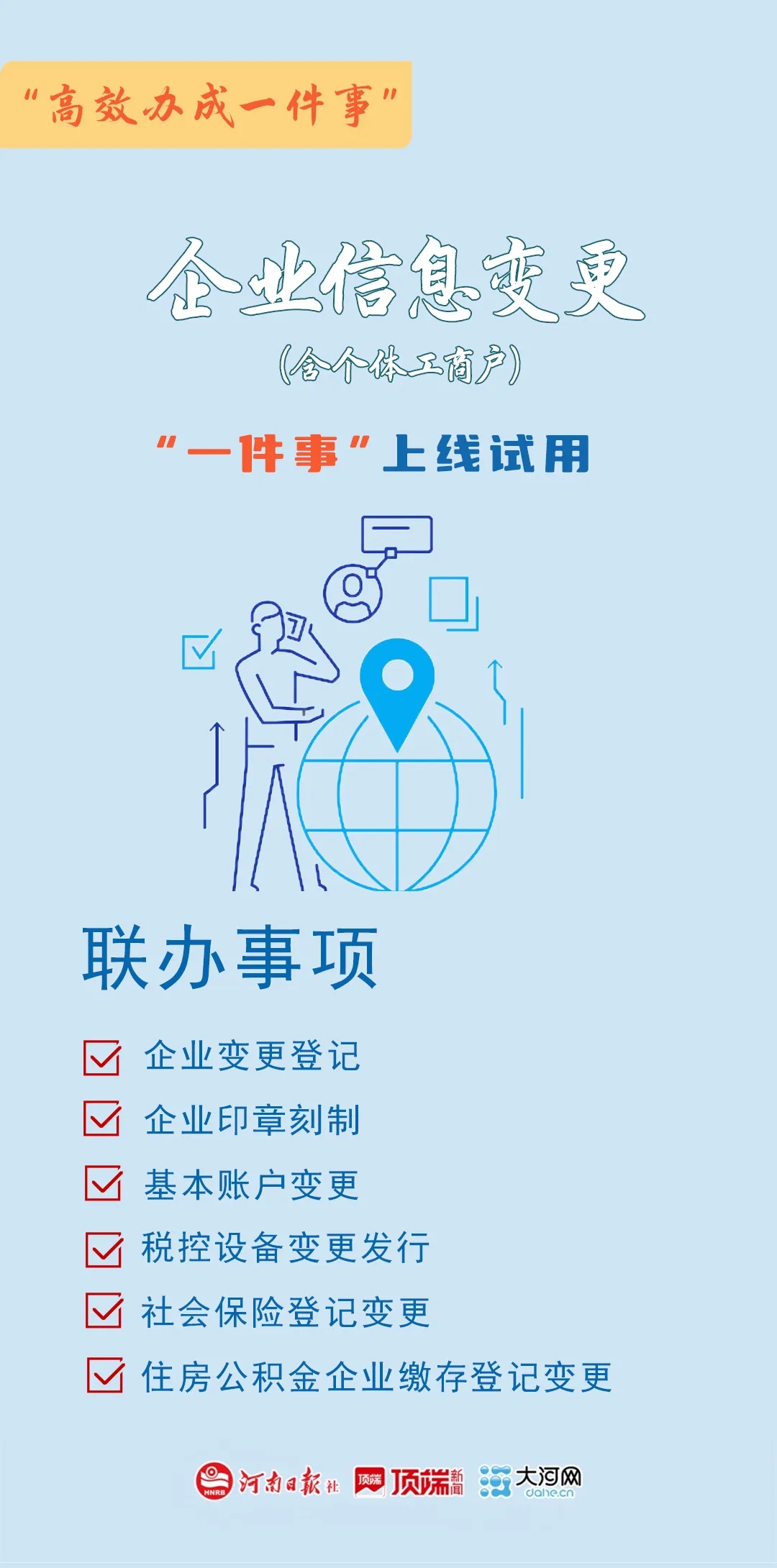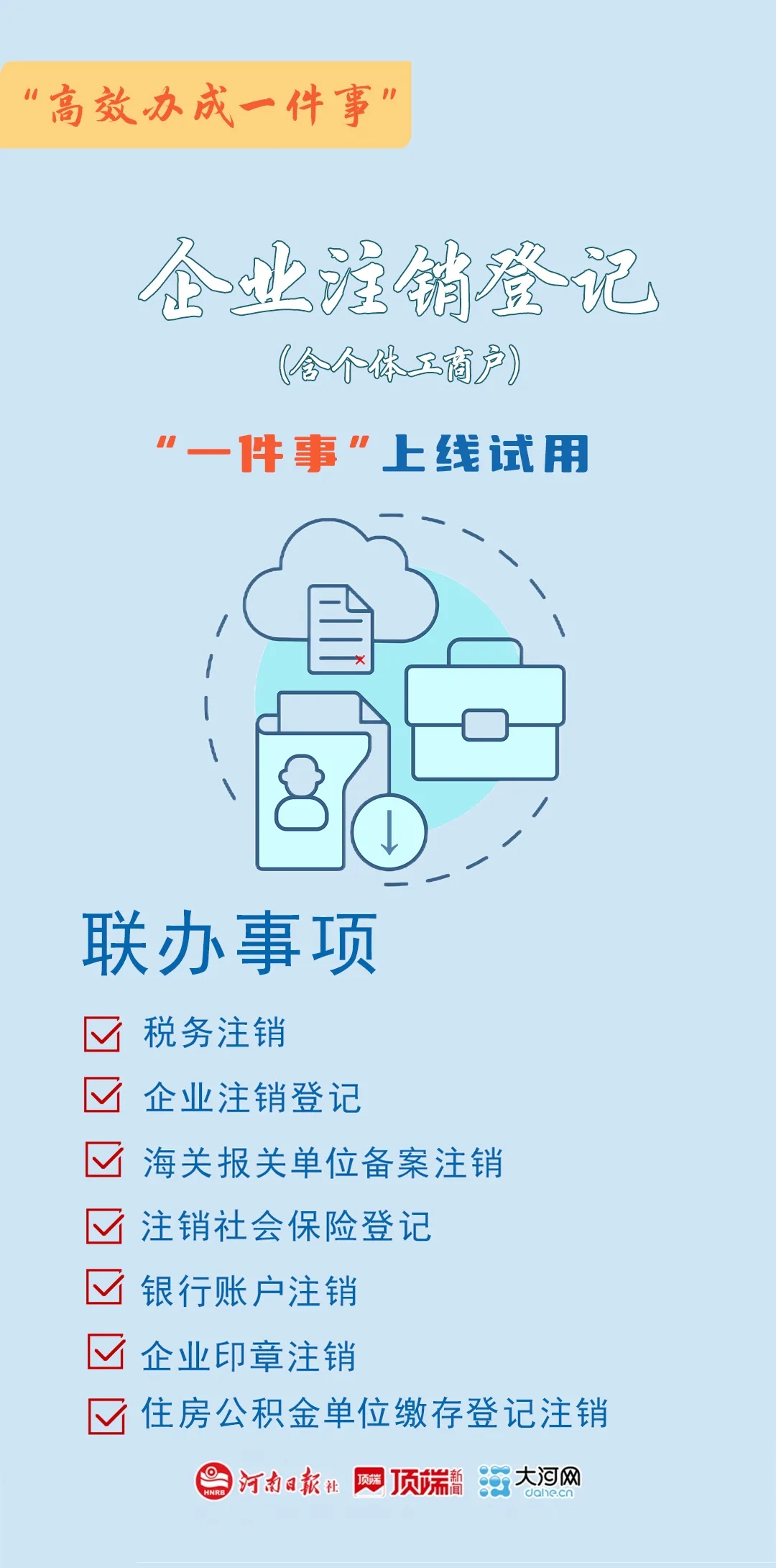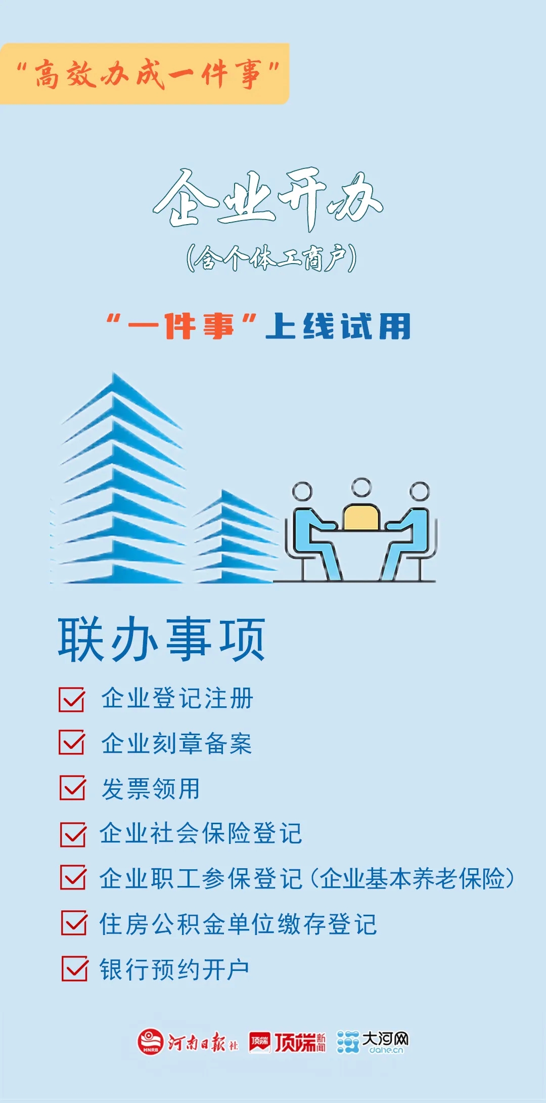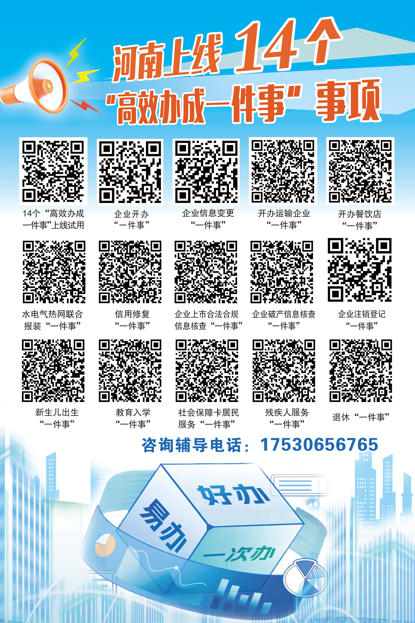 好消息!我省新生儿出生、教育入学、开办运输企业、开办餐饮店、企业上市合法合规信息核查、企业破产信息核查、社会保障卡居民服务、残疾人服务、退休、水电气热网联合报装、信用修复、企业开办、企业信息变更、企业注销登记14个“一件事”上线试用。