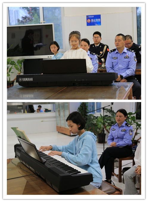 活动现场,灯光温馨、氛围热烈。伴随着悠扬的旋律,民警辅警自编自演的节目轮番登场:歌曲演唱《我和我的祖国》铿锵有力,唱出了公安民警的使命担当;舞蹈表演轻盈灵动,展现了警营儿女的柔情与活力;乐器演奏婉转悠扬,来自警宝的钢琴演奏将中秋的静谧与美好融入音符……一个个精彩节目赢得现场阵阵掌声,台下战友们不时举起手机记录美好瞬间,警营内洋溢着浓浓的节日氛围。
