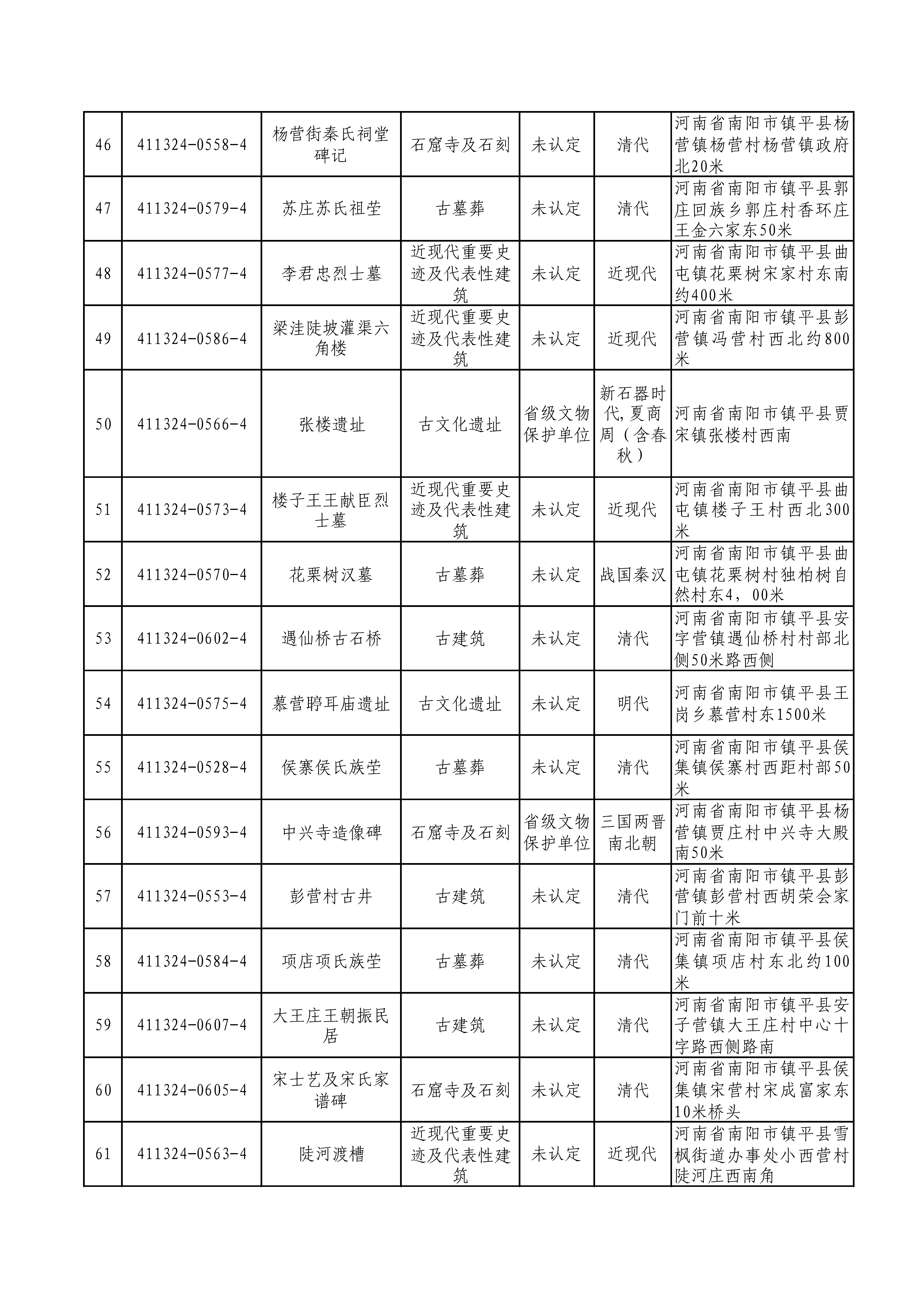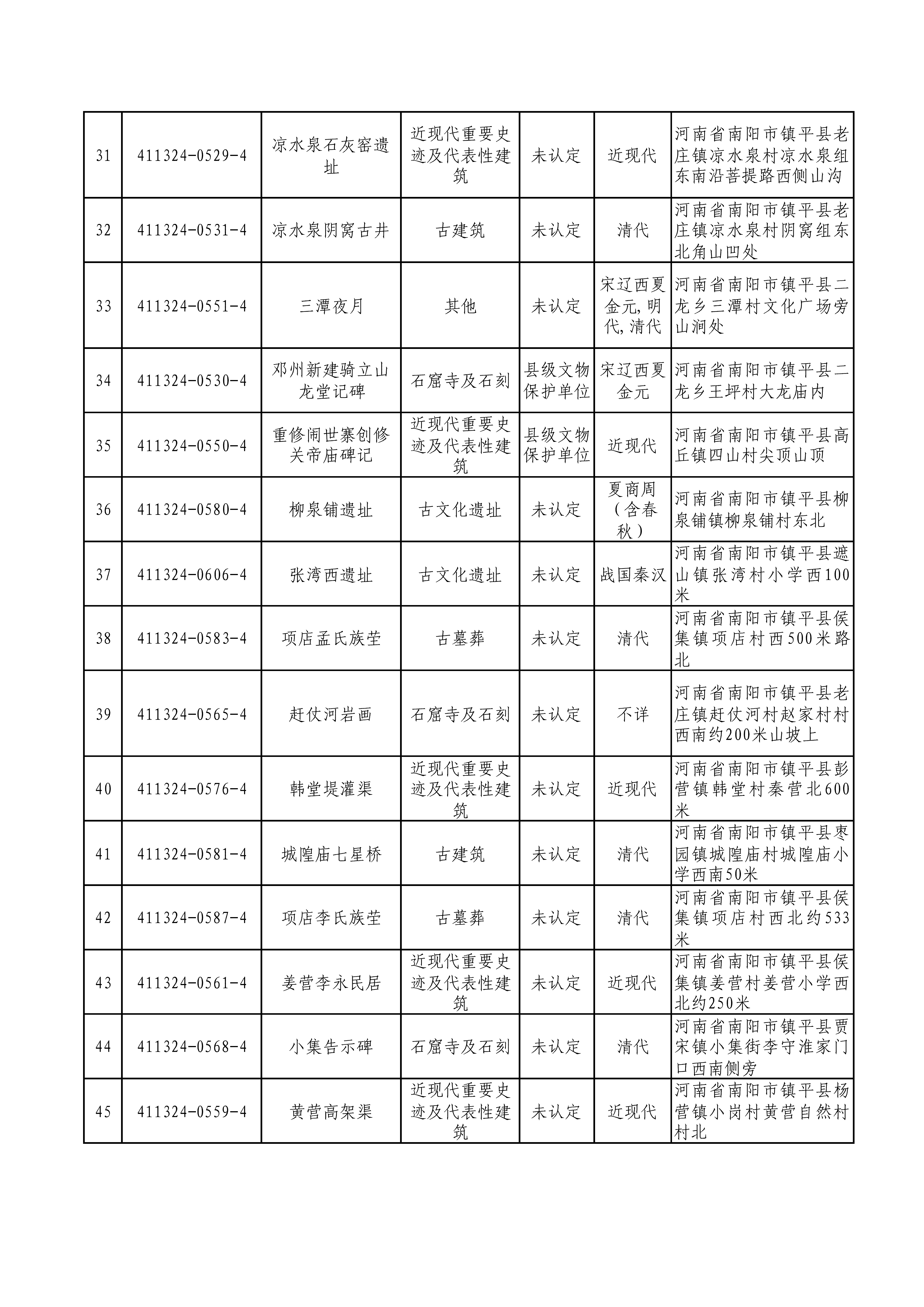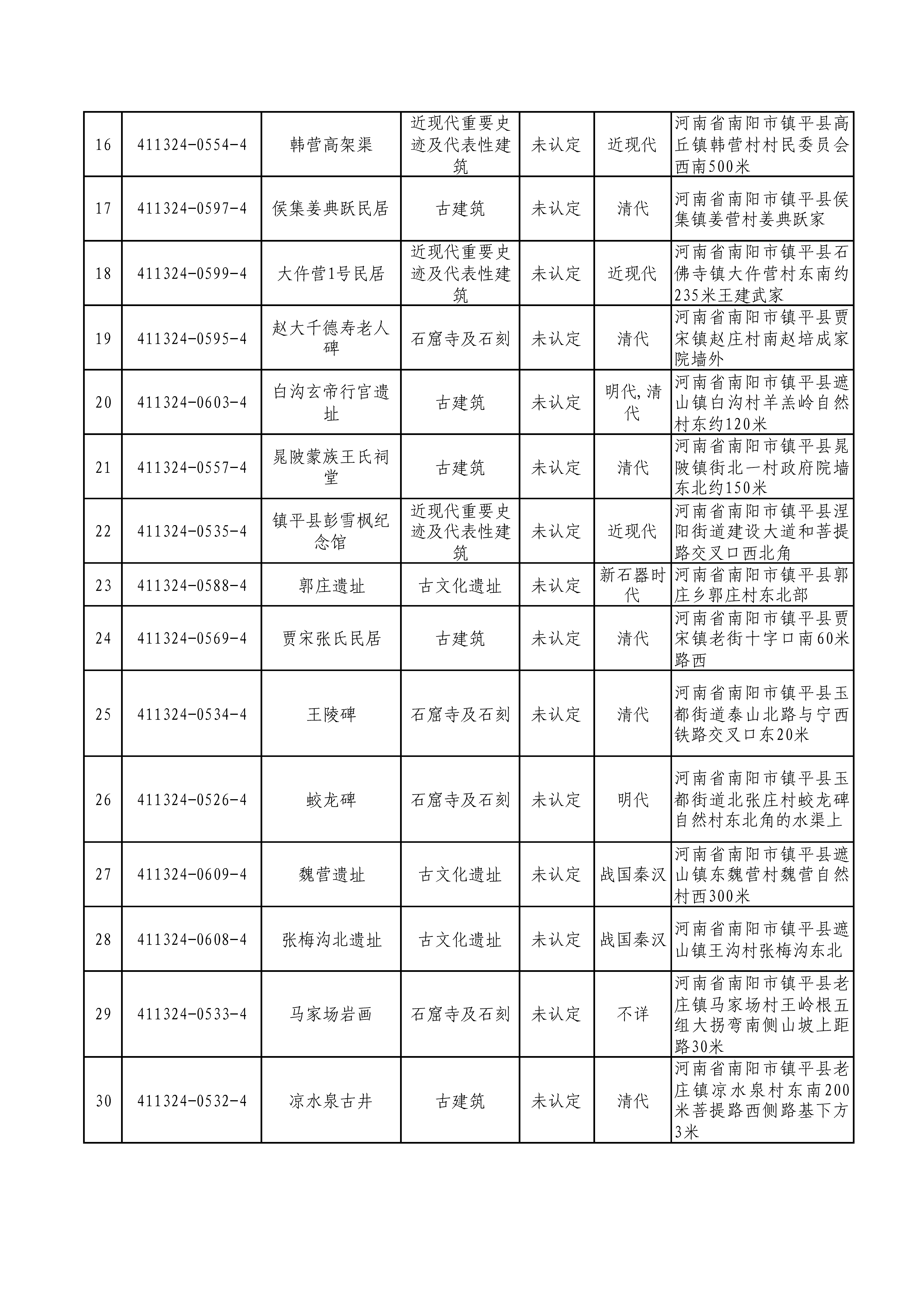 附件:镇平县第四次全国文物普查新发现不可移动文物名录
