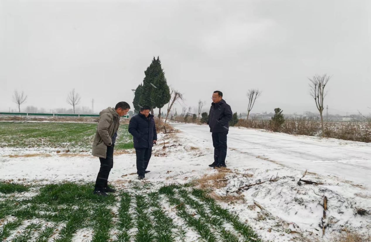 雪中送“墒”,田间把脉“护粮安”。此次降雪不仅是对民生保障的考验,也为前期干旱的农田带来了“及时雪”。此前,我镇持续无有效降水,小麦墒情普遍偏低,影响正常生长。遮山镇镇长王东同志亲自带领农办技术人员,深入田间地头,实地察看雪情、测量积雪深度、评估土壤墒情改善状况,现场分析降雪对冬小麦越冬的利弊,为下一步科学指导田间管理、确保粮食安全收集了第一手资料。