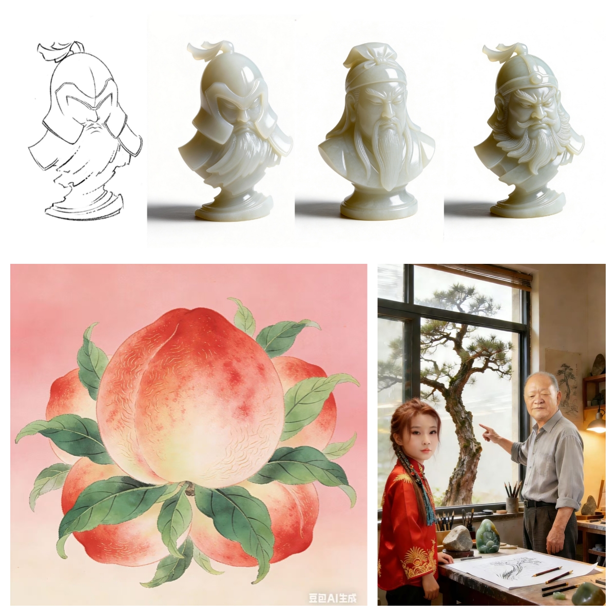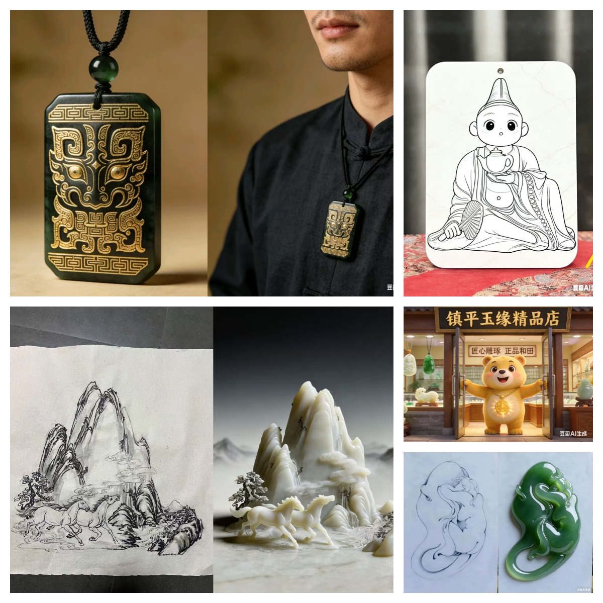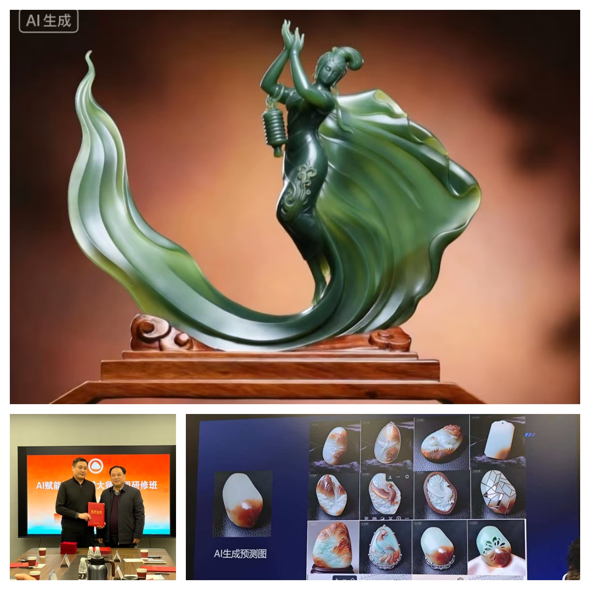 (结业成果展示环节,一批融合AI技术完成的玉雕设计图稿、短视频作品及商业策划方案集中亮相,充分展现了传统工艺与智能科技碰撞迸发的创新活力。)