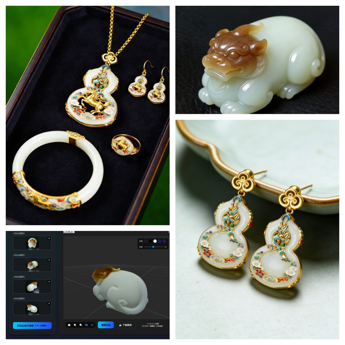 学员集聚了中国玉雕大师、河南省玉雕大师、知名珠宝设计师、本土标杆企业负责人以及电商运营精英在内的多元群体。课程中,胡爱萍教授根据镇平玉雕“山水牌”“器皿件”“人物件”等传统品类的雷同化的创作难点,现场演示12种AI生成设计方法,为学员破解创意同质化困局提供全新路径;针对传统营销“获客难、传播慢”的痛点,她现场指导学员搭建专属AI数字人分身,模拟玉雕作品直播讲解的真实场景,多位大师当场完成个人首条AI生成产品推广短视频。此外,研修班特别设置“AI设计+3D模型”环节,学员们将AI生成的设计稿快速转化为实体模型并落地成雕刻成品,将创意到样品的周期缩短一半。参训的玉雕大师纷纷表示,原本对AI存在“替代传统技艺”的顾虑,如今深刻感受到AI成为创作的“超级助手”,为传统玉雕插上了科技引擎的翅膀!