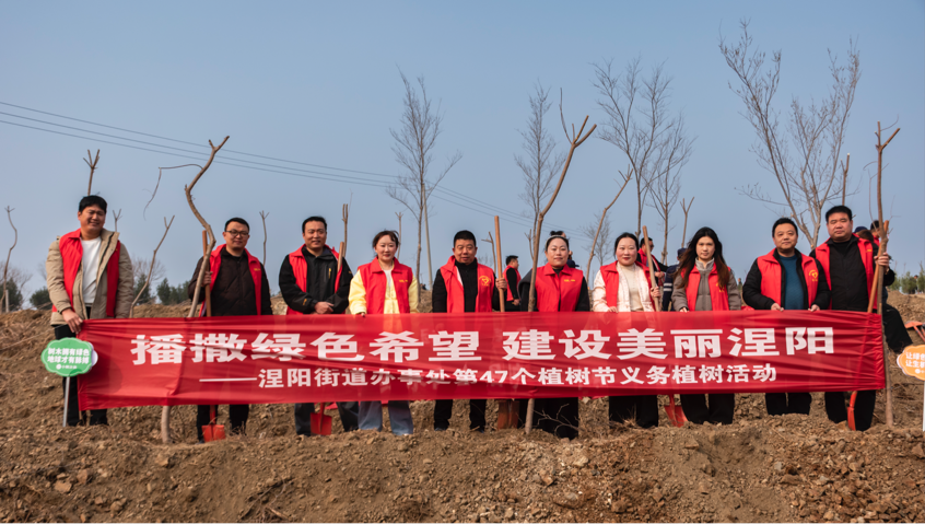 春风催新绿,植树正当时。在第47个植树节到来之际,南阳市镇平县涅阳街道组织机关干部、志愿者们开展以“播撒绿色希望、建设美丽涅阳”为主题的义务植树活动,以实际行动践行绿色发展理念,为美丽镇平再添新绿。