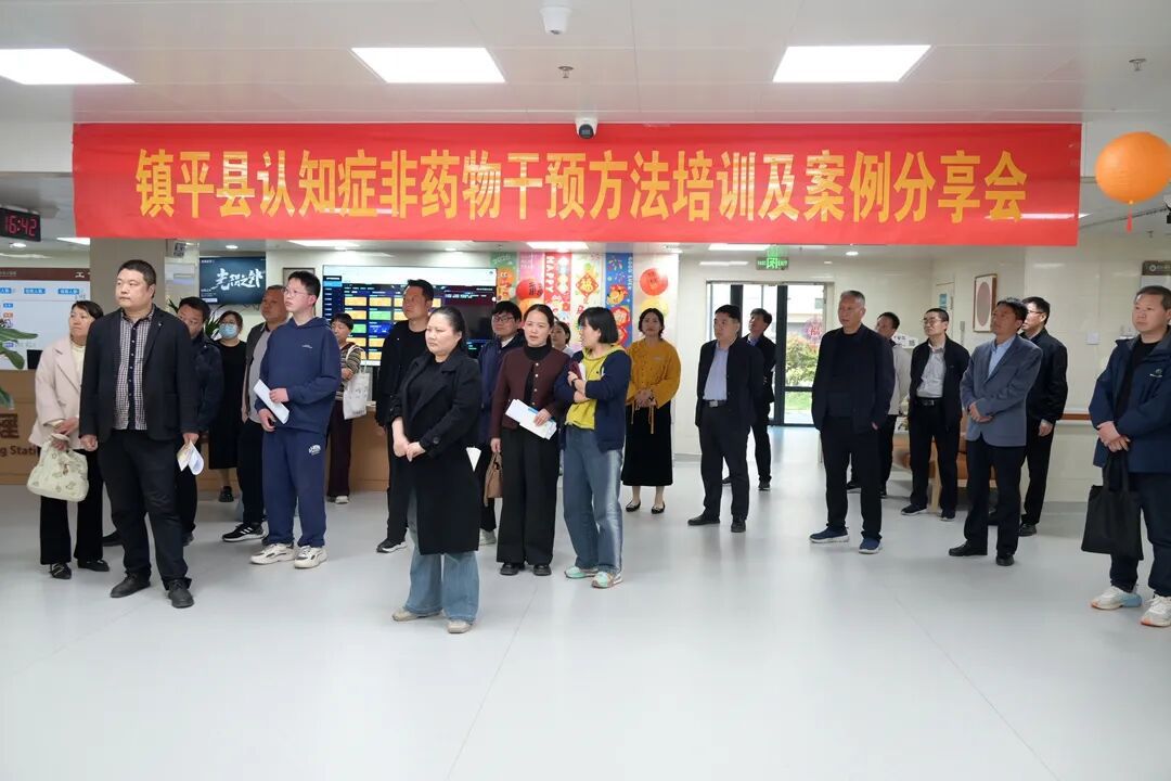 专家授课及案例分享结束后,与会人员走进县中医院医养结合中心,实地观摩交流认知症非药物干预工作经验,通过聆听讲解、参观实物和讨论交流,进一步了解了认知症识别、诊断、治疗、康复和家庭支持等核心知识和技能。
